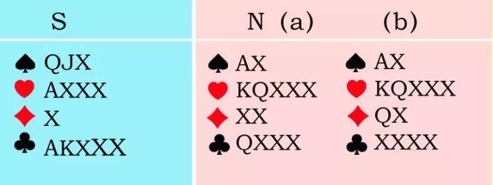 若是北家选择X,南是(a)的牌就稍亏;是(b)的牌就成功。